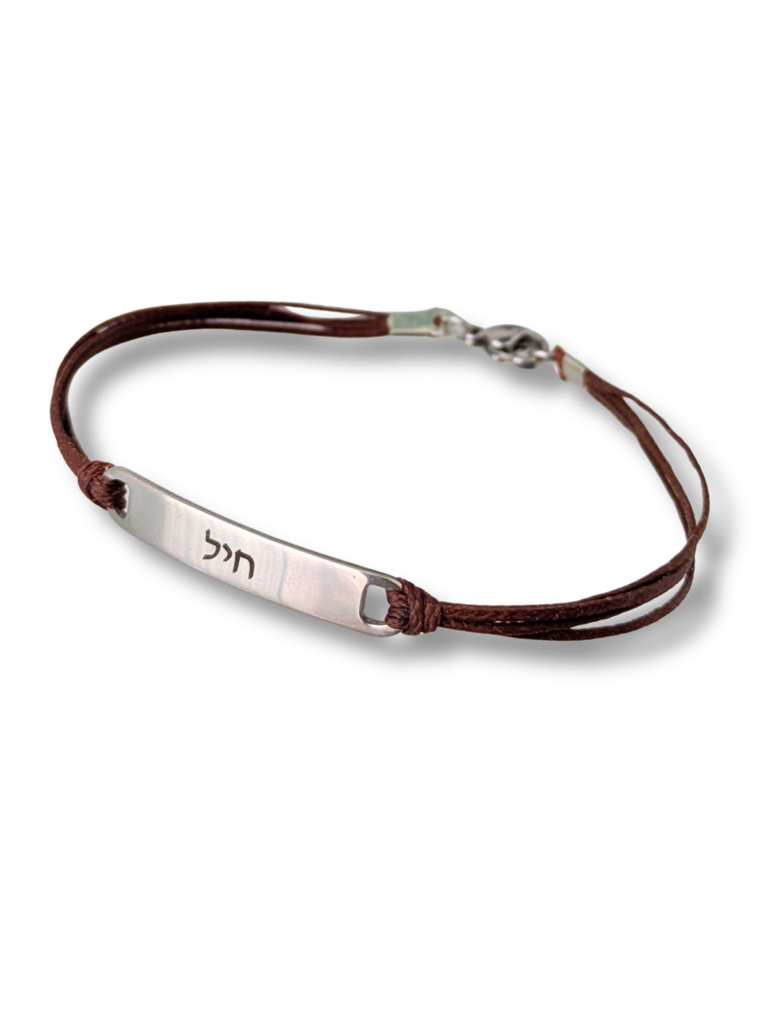 צמיד לגבר עם שם בחריטה אישית בעברית, תליון כסף וחוט שחור, מתנה לגבר